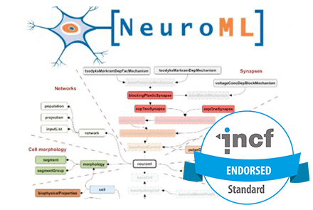 The NeuroML project focuses on standard descriptions of neuroscience model components, in the form of development of an XML (eXtensible Markup Language) based description language that provides a common data format for defining and exchanging descriptions of neuronal cell and network models.